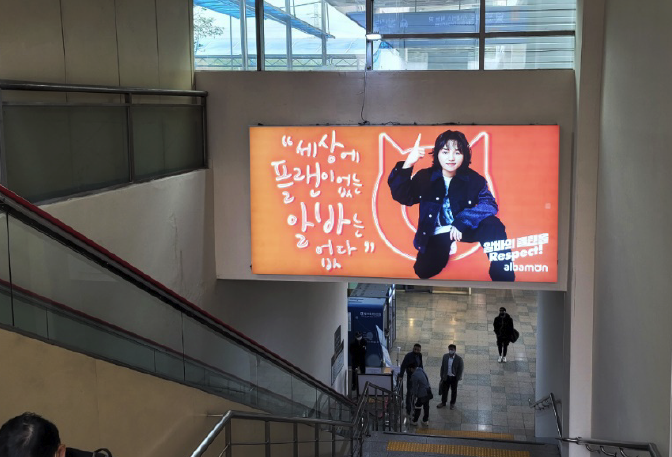 명칭 <11> 와이드컬러 B타입 규격(mm) 4,000 X 2,000 형태 LED라이트 패널 (패브릭) 광고료(월) 300만원 / 월 (VAT별도) 위치 터미널 대합실 1~2층 계단 사이 -